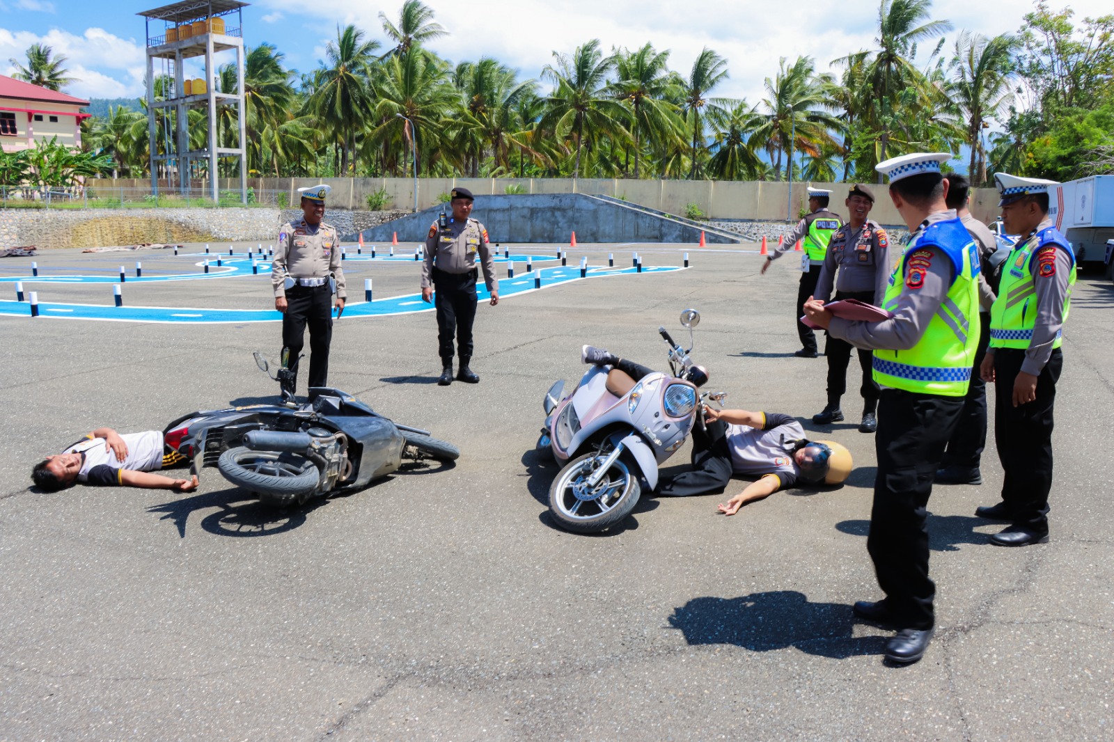 Kegiatan berlangsung di Lapangan Satpas Mapolres Banggai dengan materi pengamanan anggota yang sedang bertugas, pertolongan pertama pada korban, TPTKP dan olah TKP, pengisian e-tilang dan pengisian e-turjawali, Jumat (1/9/2023).