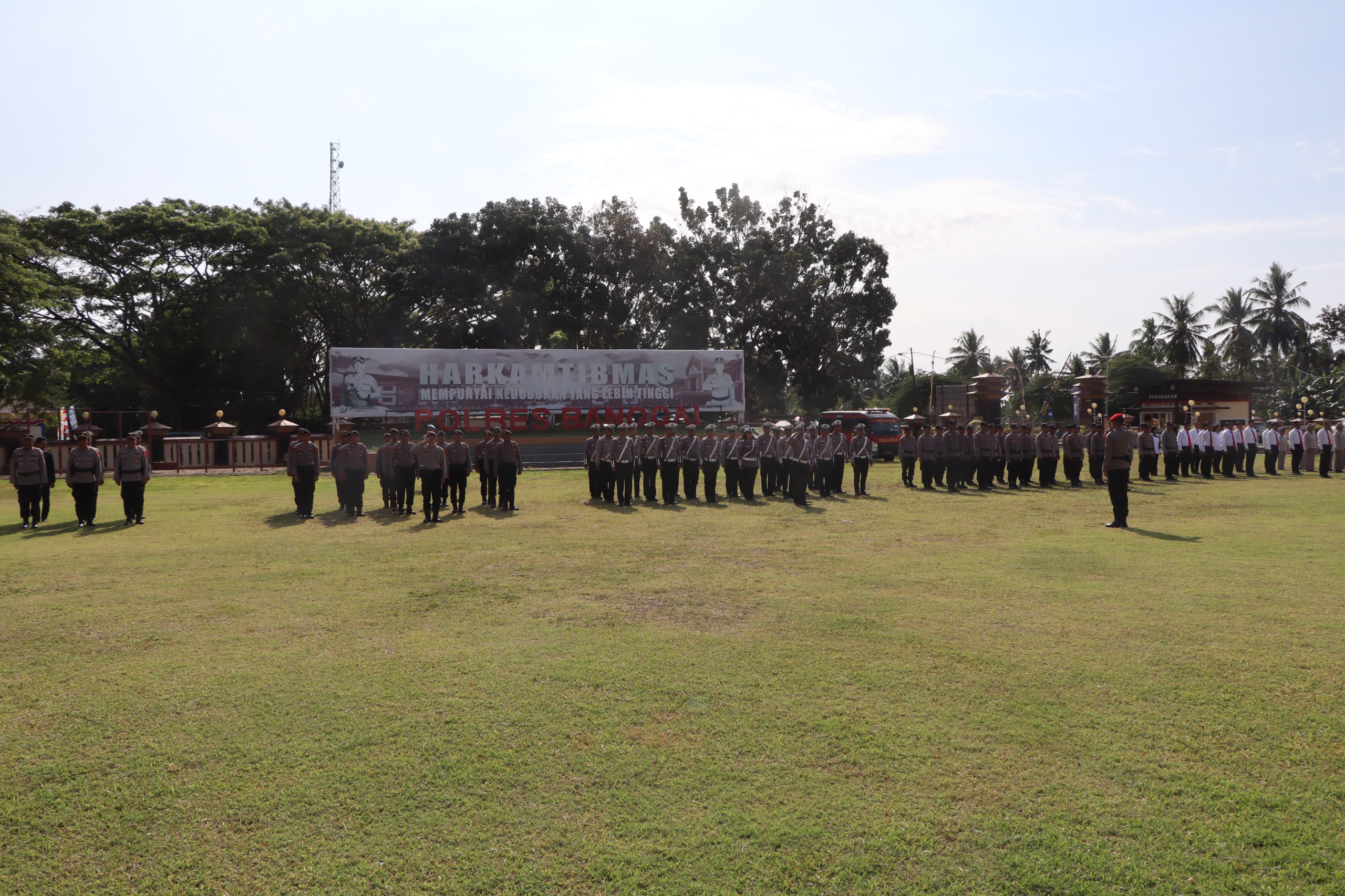 Upacara ini diikuti oleh seluruh pejabat utama Polres Banggai, perwira, bintara, Polwan, Aparatur Sipil Negara (ASN), serta peloton dari berbagai satuan fungsi. Bertindak sebagai perwira upacara adalah AKP Danang Amiadji, sementara IPDA Vicky Gultom menjabat sebagai komandan upacara. Perangkat upacara lainnya berasal dari personel Satreskrim Polres Banggai.