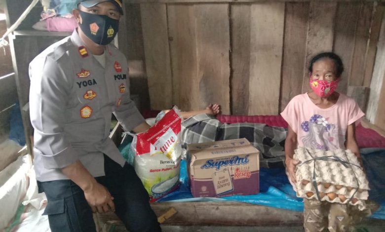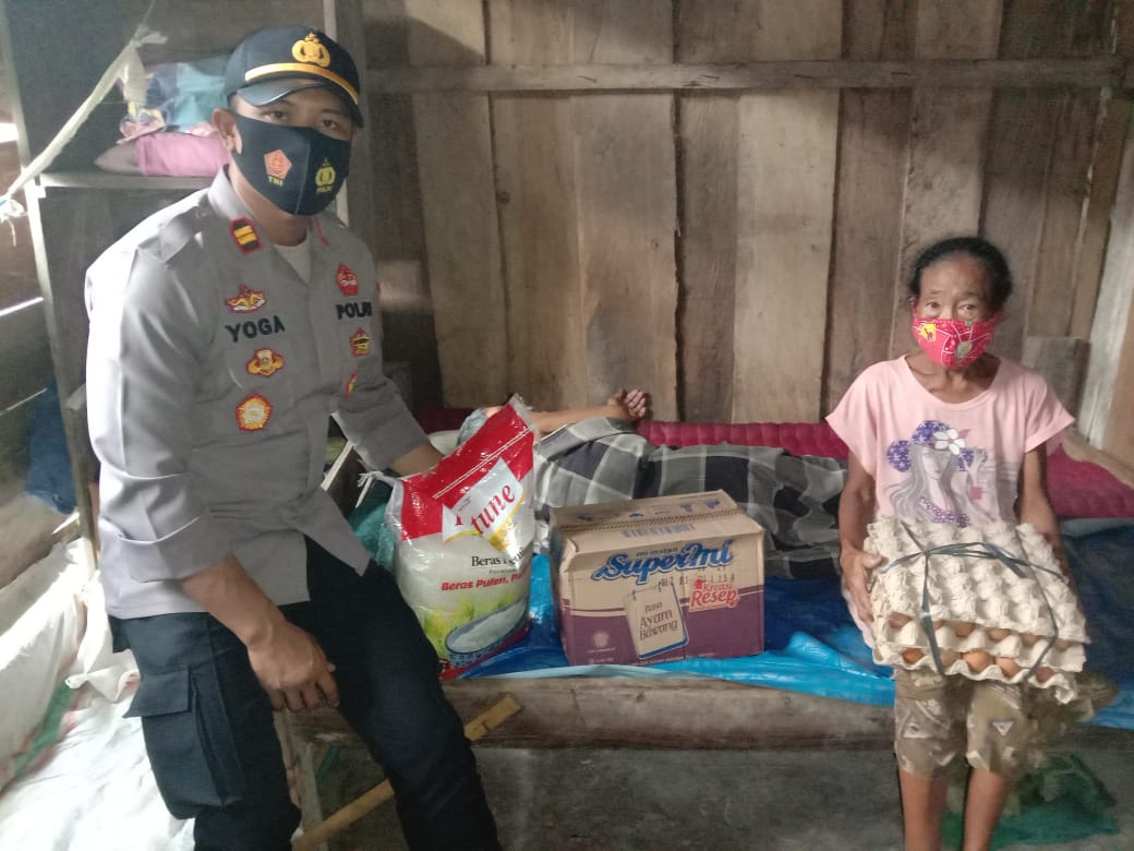 Dalam kunjungannya itu Iptu Yoga menyerahkan sedekah berupa sembako dan uang tunai sebagai bentuk kepeduliannya bersama anggota terhadap warga berekonomi lemah.