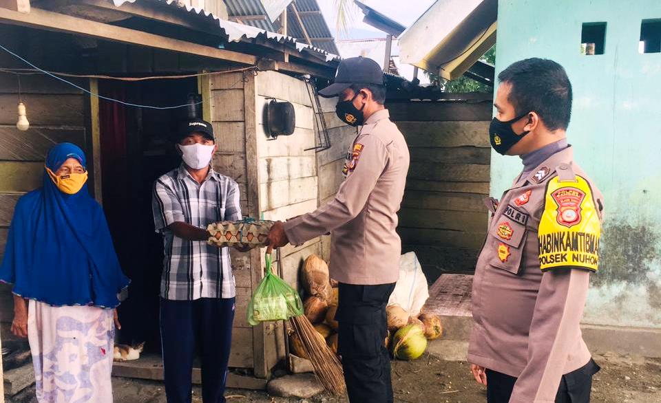 Luwuk.today, Jajaran Polsek Nuhon menyalurkan Bantuan Sosial (Bansos) berupa paket sembako kepada warga yang tengah menjalani Isolasi Mandiri (Isoman) akibat terpapar Covid-19, Senin (9/8/2021).