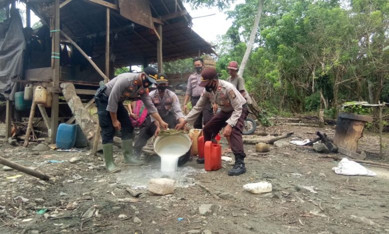 Barang bukti berupa alat penyulingan langsung dibongkar, sedangkan untuk saguer sebanyak 110 liter dimusnahkan di lokasi dengan cara tumpahkan dan jeriken dibakar.