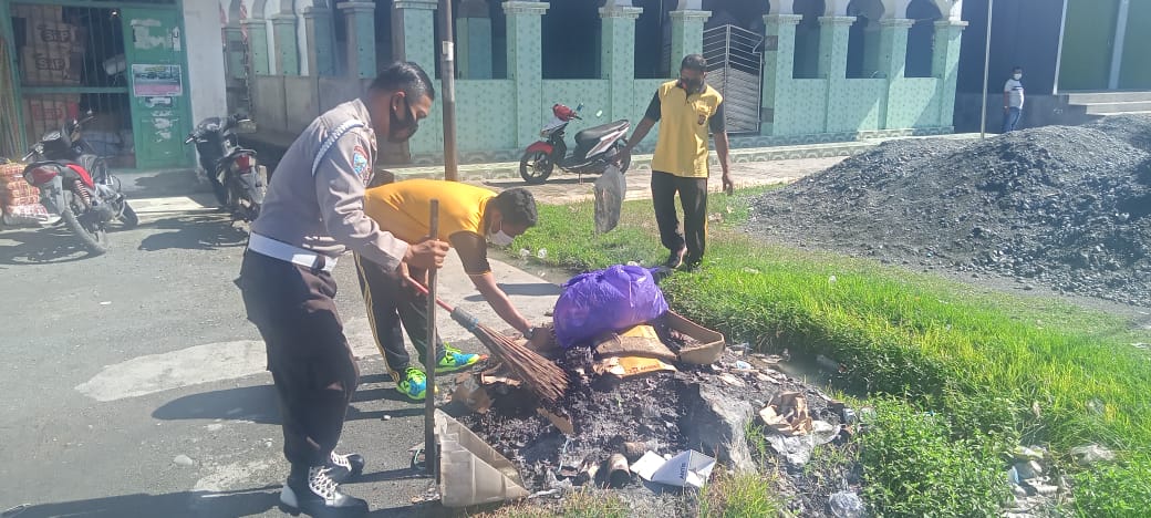 Luwuk.today, Personel Polsek Bunta menggelar kegiatan Jumat Pagi Kota Bersih (Jumpa Kasih) dengan menggelar aksi peduli kebersihan lingkungan, Jumat (27/8/2021).