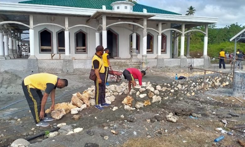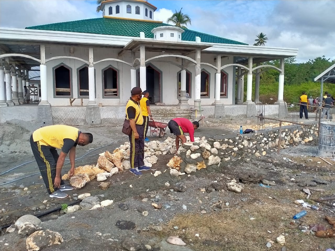 Seperti yang di lakukan oleh personel Polsek Kintom bersama masyarakat dalam pembangunan pagar Masjid Al-Husein, Desa Dimpalon Baru, Kecamatan Kintom, Kabupaten Banggai, Jumat (8/1/2021).