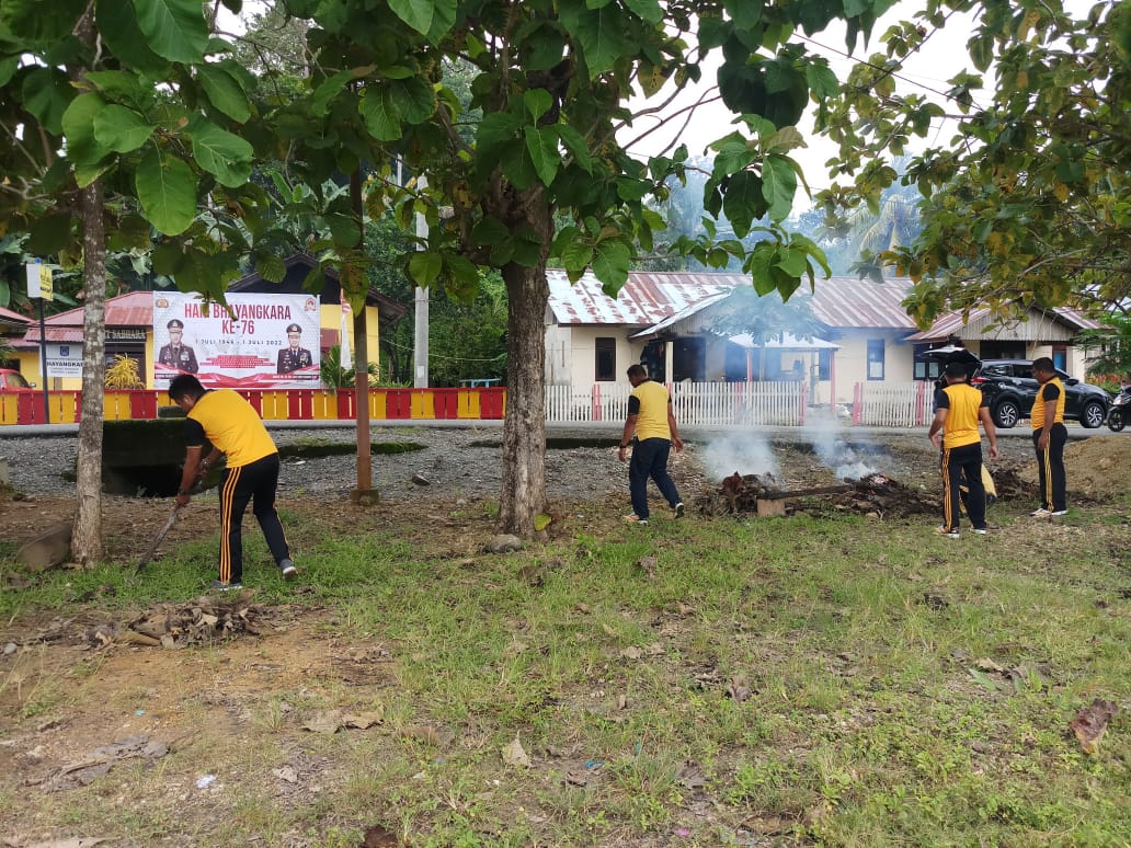 Dibawah pimpinan langsung Kapolsek Kapolsek Lamala Iptu Muhammad Zulfikar SH, anggota saling bahu membahu membersihkan halaman dan disekitar Mako.
