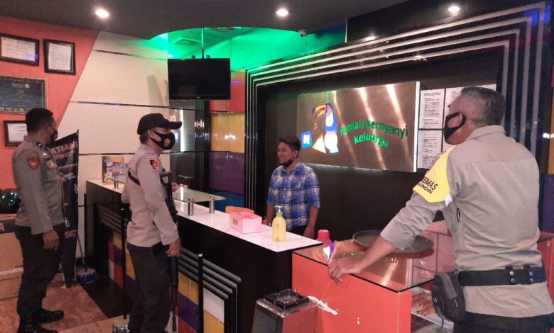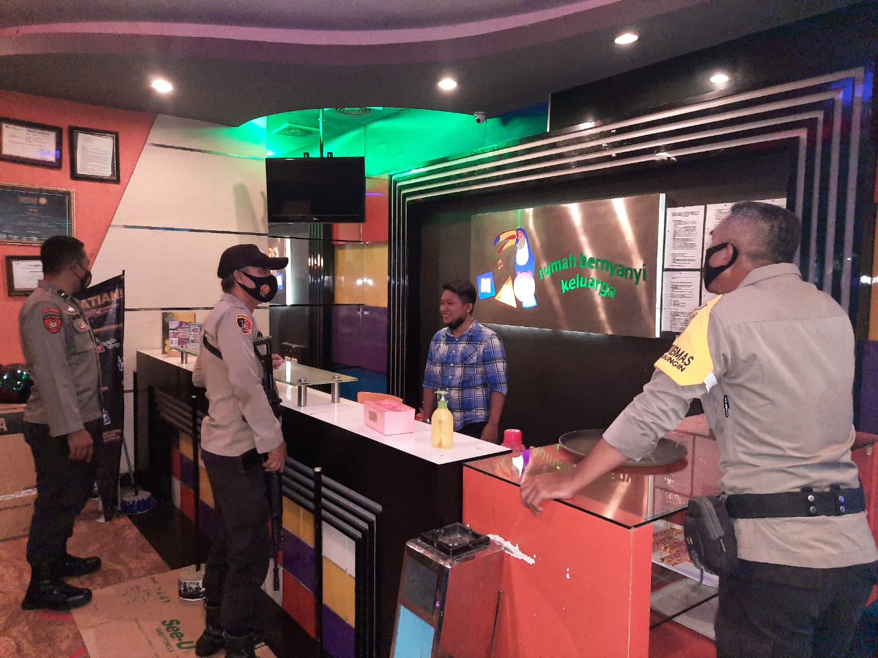 Luwuk.today, Aparat Polsek Luwuk menggelar patroli dan razia penengakan protokol kesehatan (prokes) di tempat karaoke di kompleks shoping mall Luwuk, Kabupaten Banggai, Minggu (19/12/2021) malam.