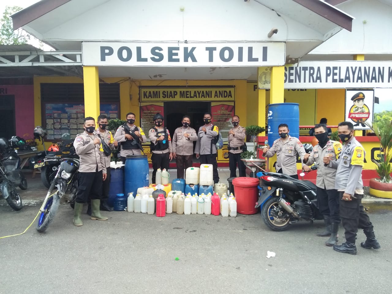Polsek Toili Amankan 1 Ton Miras Jenis Cap Tikus di Desa Sindang Baru