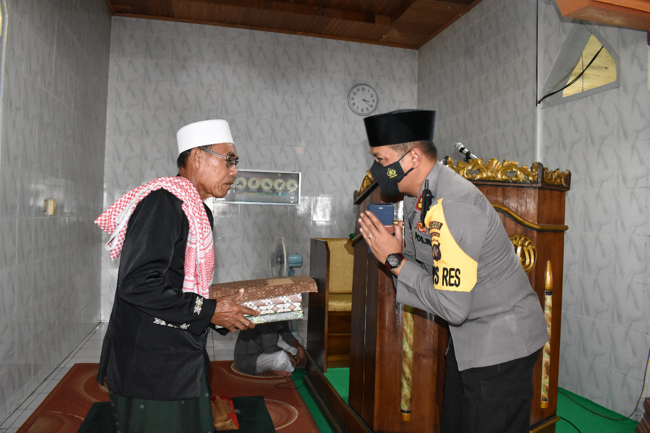 Seusai salat jumat berjamaah, AKBP Satria memberikan pesan kamtibmas kepada para jamaah diantaranya dengan mengajak untuk mematuhi protokol kesehatan dan mendukung program pemerintah Vaksinasi Covid-19.