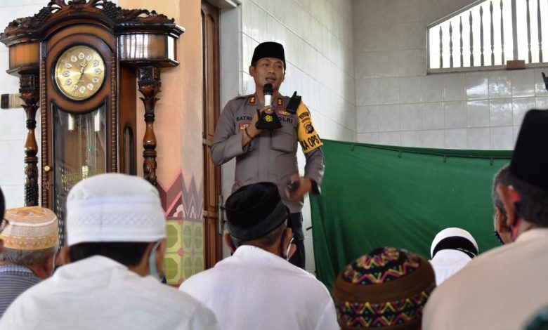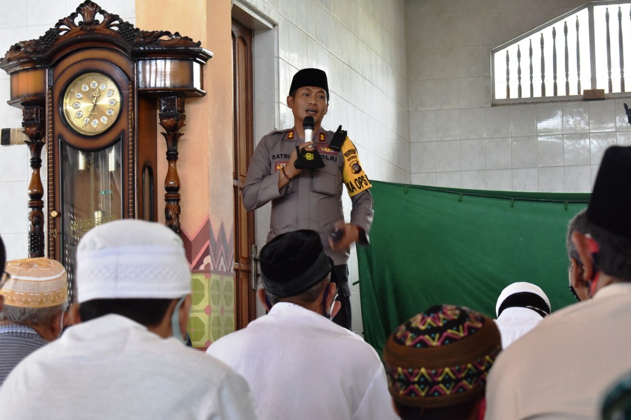 Usai melaksankan salat jumat berjamaah, Kapolres Banggai berkesempatan memberikan pesan kamtibmas kepada jamaah.