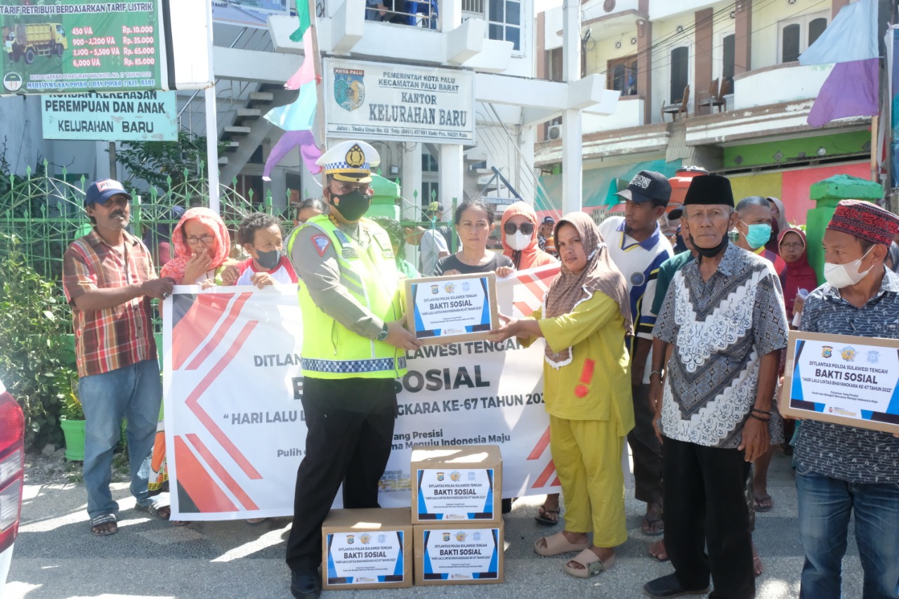 Luwuk.today, Palu – Jelang peringatan Hari lalu lintas Bhayangkara ke 67 tahun 2022, Dit Lantas Polda Sulteng gelar kegiatan sosial berupa pembagian paket sembak, .kamis (08/09).