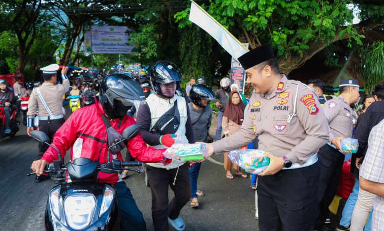 Satlantas Polres Banggai Bagikan 600 Takjil dan Gelar Patroli Ngabuburit Jelang Buka Puasa