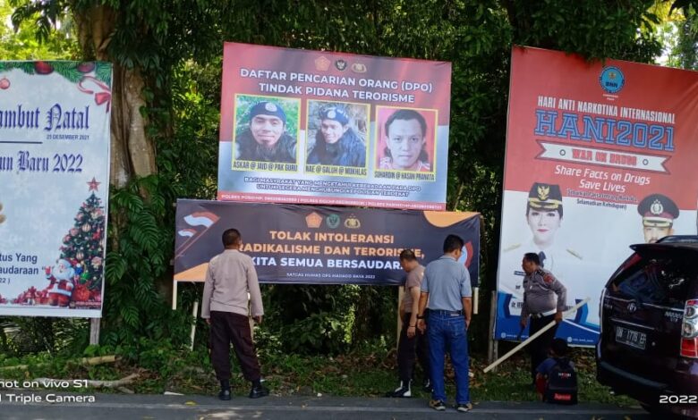 “Mulai hari Senin (7/2/2022) Satgas V Humas Ops Madago Raya menyebar, menempel sticker DPO teroris Poso, pemasangan baliho dan spanduk himbauan,” Ungkap Wakasatgas Humas AKBP Yudho Huntoro di Poso, rabu (9/2/2022)