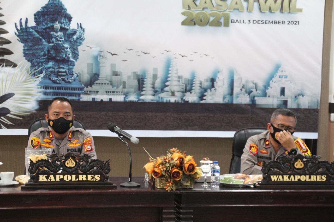 Luwuk.today, Kapolres Banggai AKBP Yoga Priyahutama SH, SIK, MH, bersama Pejabat Utama (PJU) Polres Banggai mengikuti Apel Kasatwil Polri tahun 2021 secara virtual, di Aula Rupatama Mapolres Banggai, Jumat (3/12/2021).