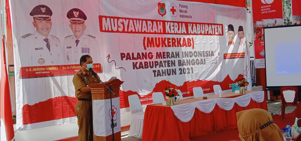 Luwuk.today, Mewakili Bupati Banggai, Sekretaris Daerah Kab. Banggai Ir. Abdullah, M.Si membuka secara resmi kegiatan Musyawarah Kerja Kabupaten (MUKERKAB) Palang Merah Indonesia Kabupaten Banggai Tahun 2021, bertemapat di Markas PMI Kab. Banggai, Senin (22/11/2021).