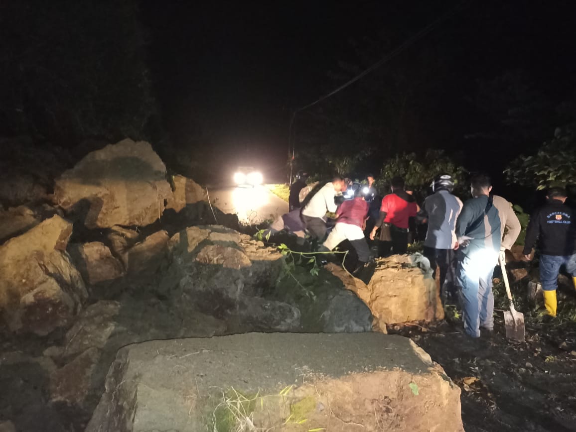 Sekitar pukul 24.00 Wita, material longsor tersebut sudah sebagian besar dibersihkan dari badan jalan dan sebagian masih berada di badan jalan.