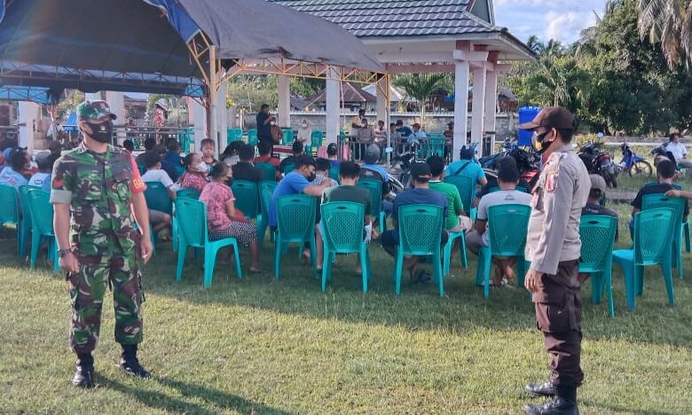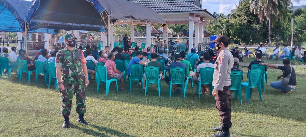 Luwuk.today, Personel Polsek Lamala bersama Koramil mengamankan jalannya kegiatan tahap Kampanye Pemilihan Kepala Desa (Pilkades ) Serentak gelombang ke II tahun 2021, Sabtu (27/11/2021).