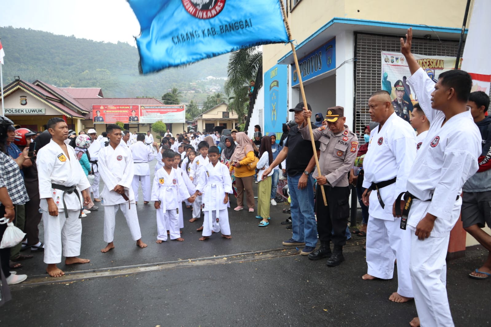 Luwuk.today, Plh Kapolsek Luwuk Kompol Zulkifli Ginoga membuka kegiatan Long March INKANAS Kabupten Banggai di Mapolsek Luwuk, Minggu (10/9/23) pagi.