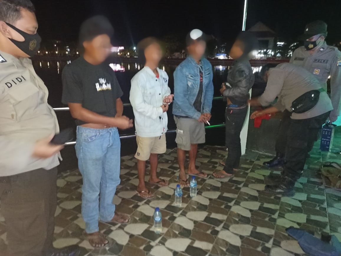 Luwuk.today, Aparat Polsek Luwuk mengamankan empat pemuda tengah mengonsumsi miras di belakang Masjid An-Nur Luwuk, Kota Luwuk, Jumat (3/9/2021).