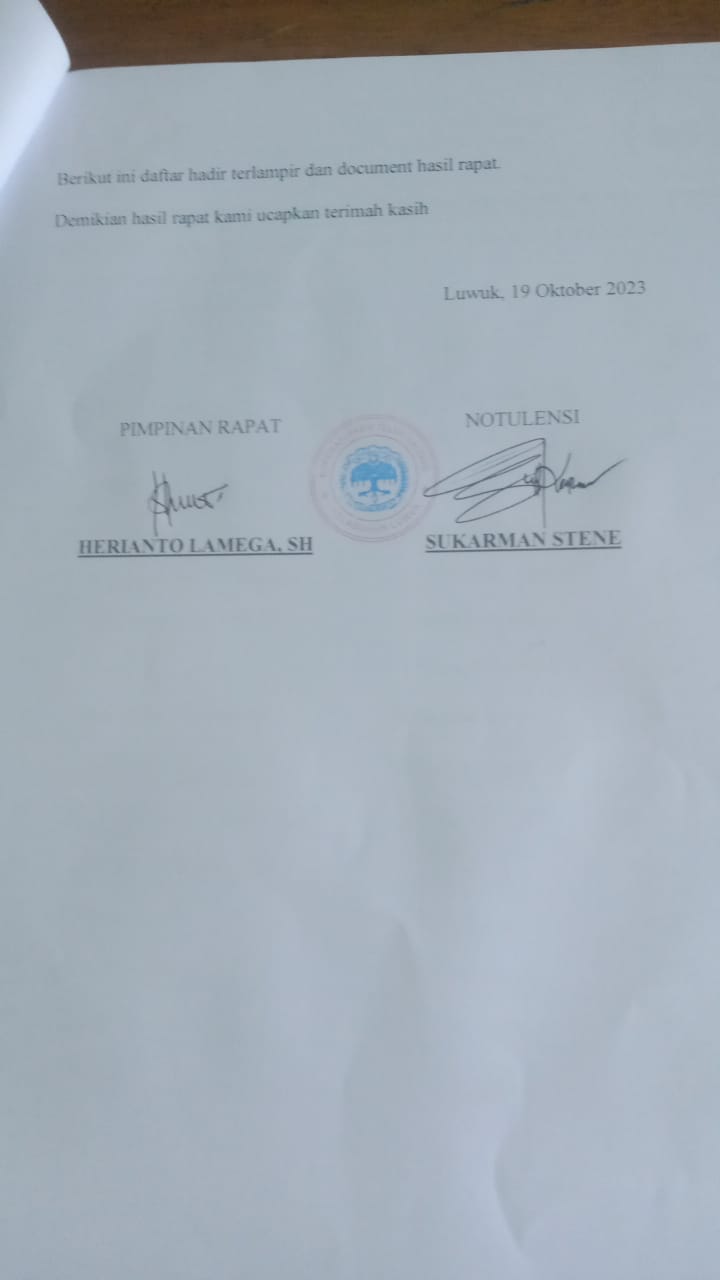 - Bahwa Pengelola UUPJ Pelabuhan Tangkian (Amir Mangulele) menyepakati solusi yang ditawarkan oleh Pengurus Koperasi TKBM Teluk Lalong Pelabuhan Luwuk yang mana kegiatan aktivitas bongkar muat dikerjakan seperti biasanya dua perusahaan di Pelabuhan Luwuk (PT. Temas dan PT. Tanto) dan dua perusahaan di Pelabuhan Tangkian (PT. Meratus dan PT. Spil) dalam hal ini solusi yang ditawarkan itu tidak berdampak pada kesenjangan sosial, keamanan, ekonomi dan kesetaraan.