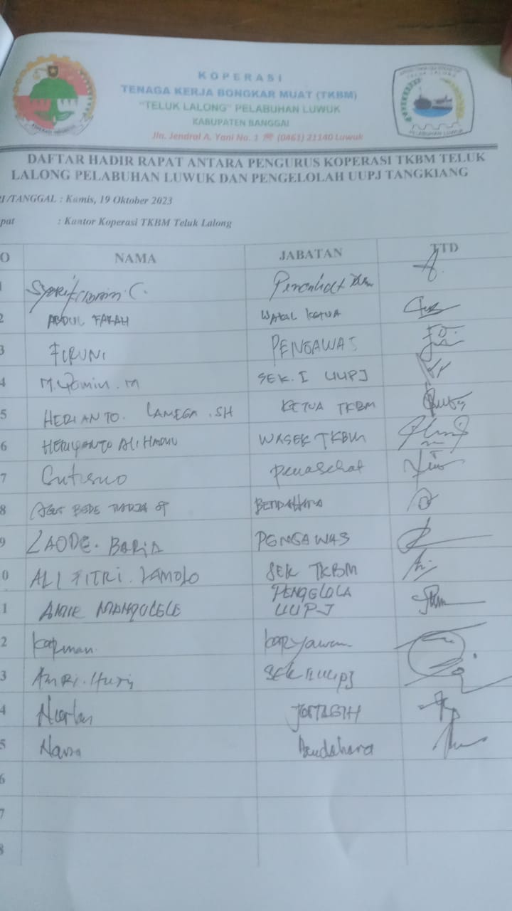 Pertemuan tersebut dilaksanakan di kantor Koperasi TKBM Teluk Lalong pada Kamis (19/10/2023), untuk membahas lebih detail persoalan pemindahan aktivitas bongkar muat ke Pelabuhan Tangkian.