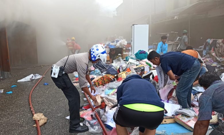 Luwuk.today, Luwuk – Aksi heroik aparat TNI-Polri bersama petugas pemadam kebakaran, instansi terkait, dan masyarakat dalam memadamkan kebakaran hebat yang melanda Pasar Sentral Luwuk, Jalan Ahmad Yani, Kabupaten Banggai, Minggu (8/12/2024) pagi, mendapat perhatian luas. Kebakaran yang melanda kawasan pasar tersebut menghanguskan sejumlah bangunan yang mayoritas terbuat dari bahan kayu, sehingga api dengan cepat melahap seluruh bangunan.