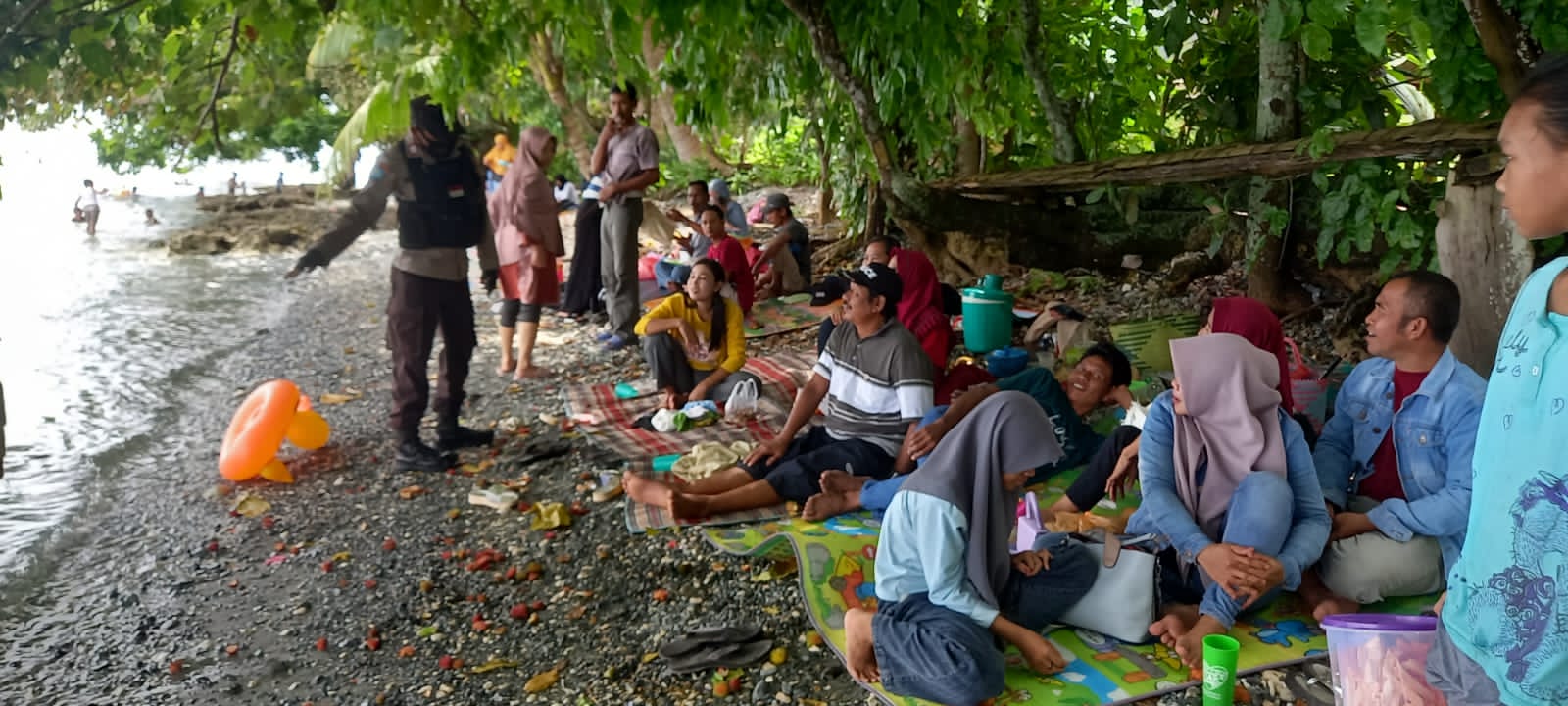 Luwuk.today, Aparat TNI-Polri memantau dan mengamankan kegiatan masyarakat di objek wisata Pantai TPI Desa Pongian Kecamatan Bunta, Kabupaten Banggai, Senin (9/5/2022).