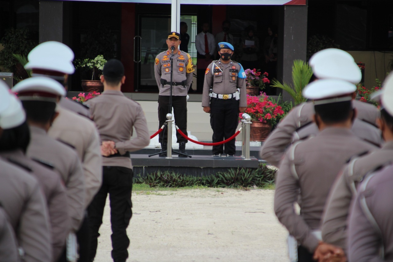 Mengakhiri amanatnya, AKBP Yoga menjelaskan kembali tiga moto yang menjadi andalannya dalam bergerak menjalankan tugas kepolisian.