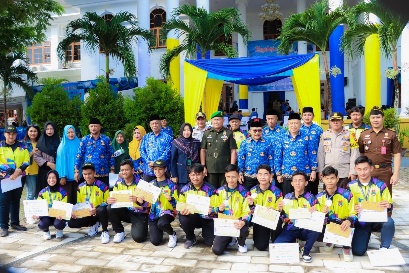 Setelah upacara bendera dilanjutkan dengan pemotongan tumpeng dan pemberian bonus kepada para atlet Banggai yang berprestasi di kejuaraan Kabupaten Parigi Moutong kemarin.