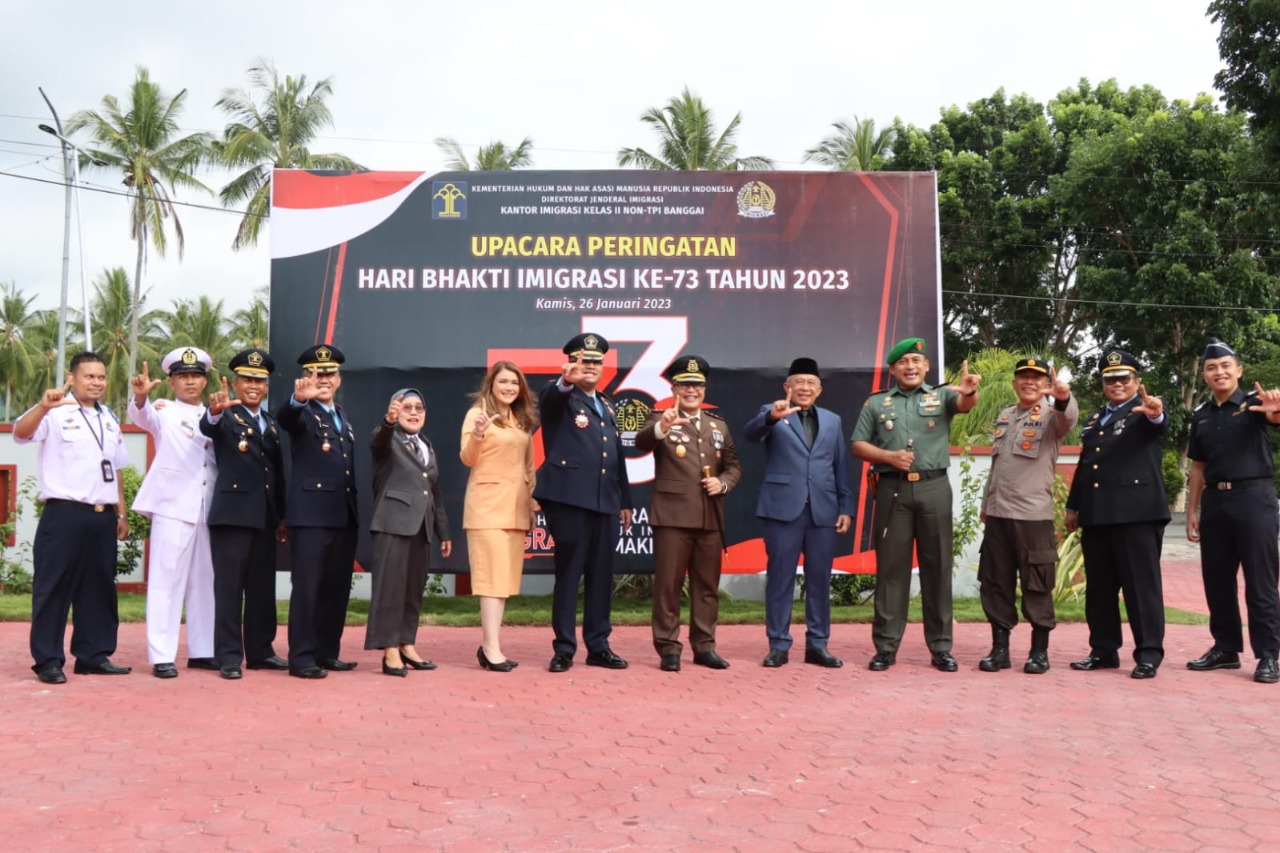 Luwuk.today, Wakapolres Banggai Kompol Margiyanta SH, MH, menghadiri upacara peringatan hari Bhakti Imigrasi ke 73 Tahun di Kantor Imigrasi, Kabupaten Banggai, Kamis (23/1/2023).