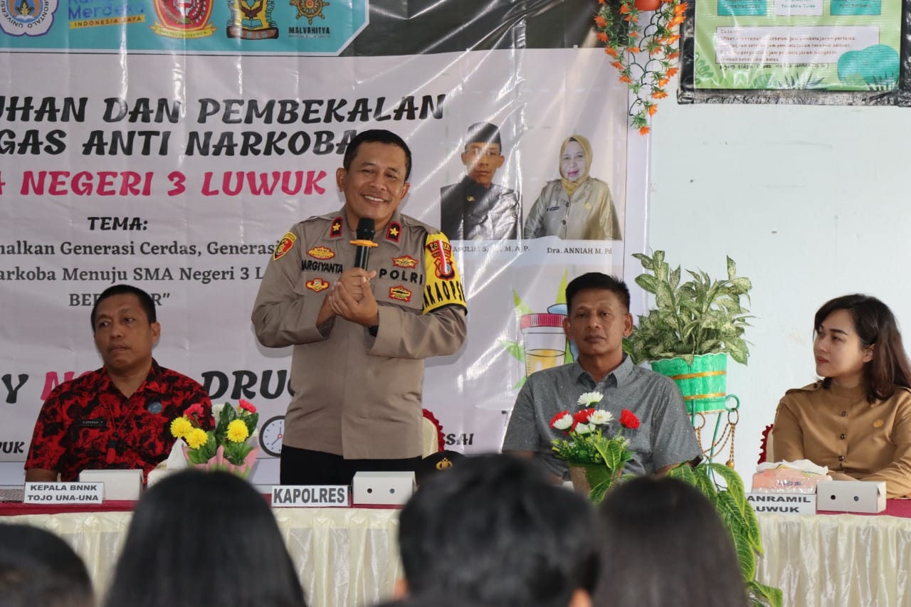 Luwuk.today, Wakapolres Banggai Kompol Margiyanta SH, MH, meminta para pelajar untuk menghindari dan tidak terlibat dalam tindak pidana penyalahgunaan narkoba sebab dapat merugikan diri sendiri.