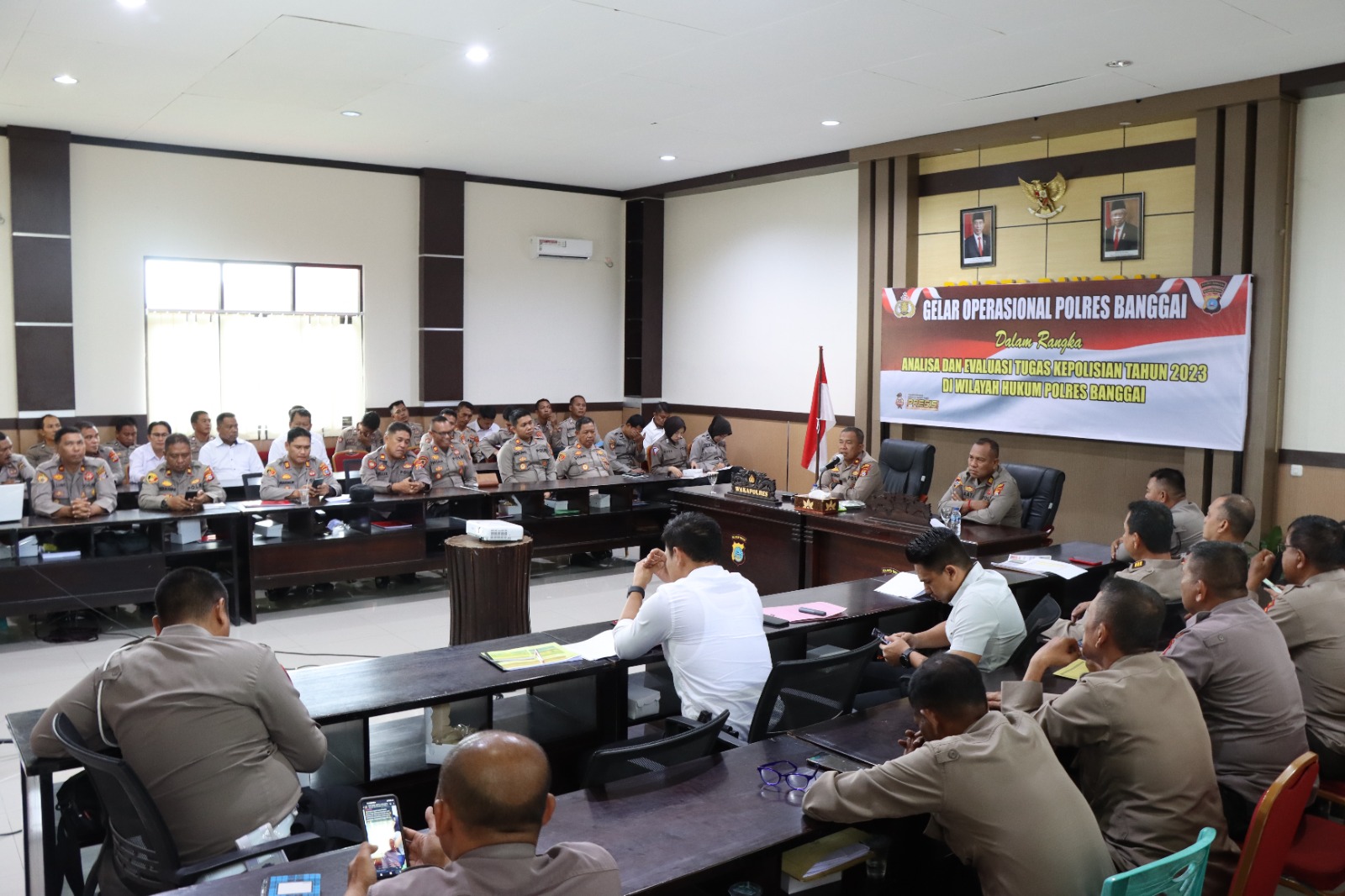 Dalam penyampaian paparan Kabag Ops, situasi kamtibmas pada bulan Februari 2023 berjalan kondusif, ungkap kasus narkoba meningkat, serta belum adanya gangguan karhutla yang mana Kabupaten Banggai masuk wilayah daerah rawan pembakaran hutan dan lahan.