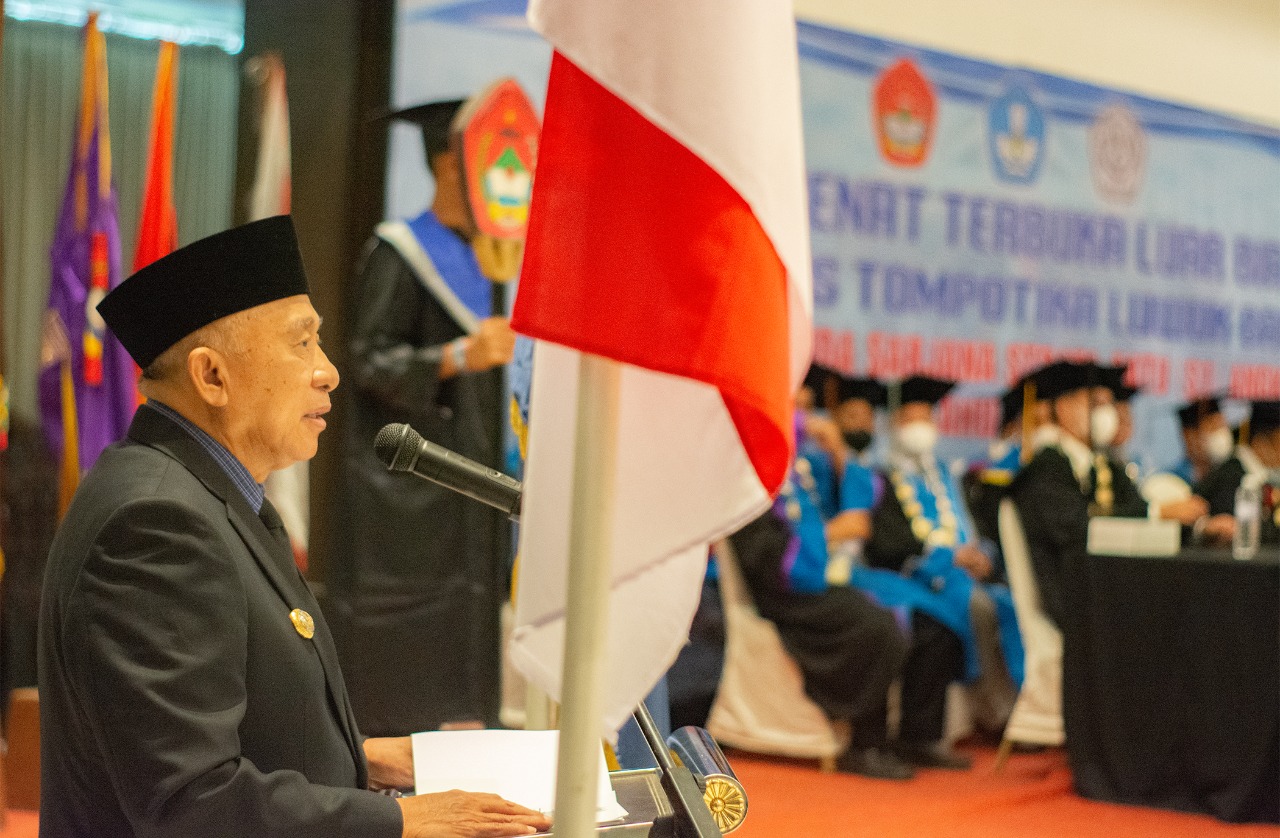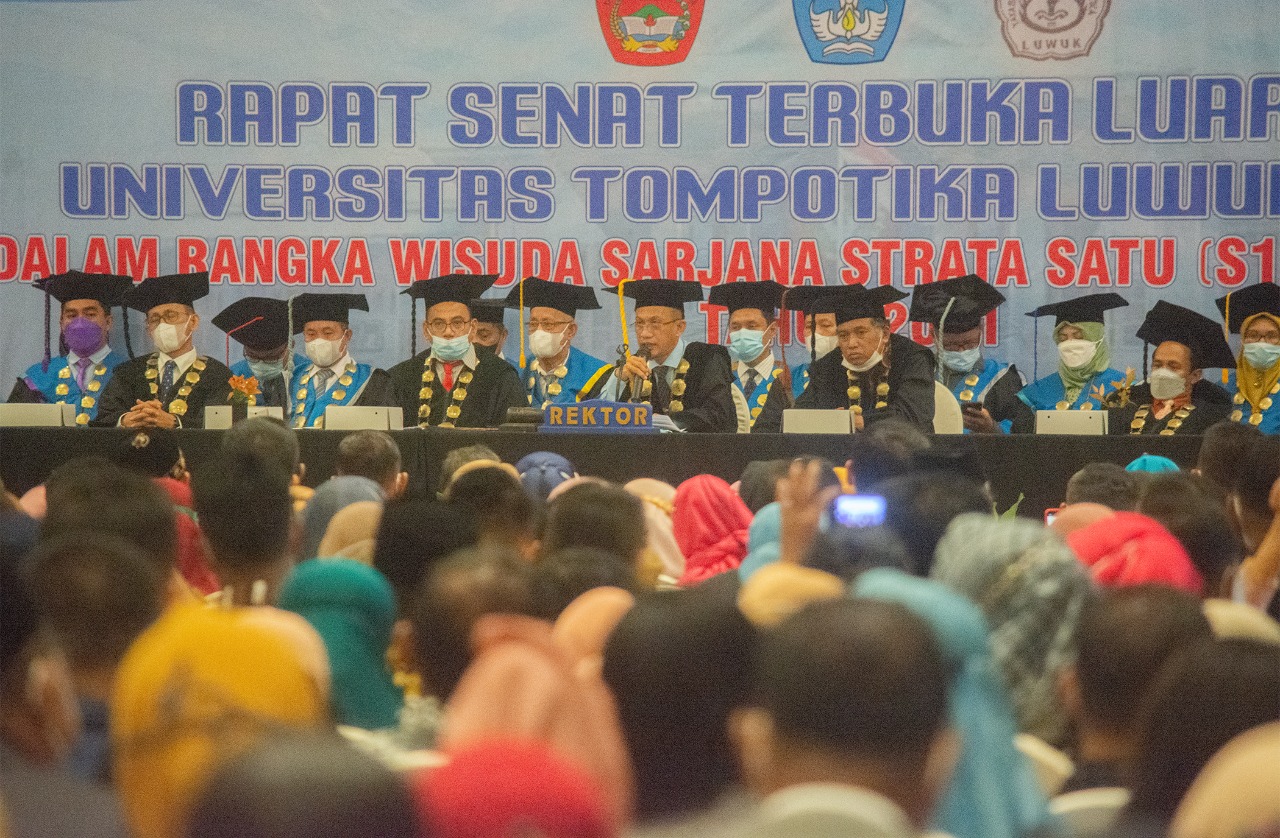 Luwuk.today, Wakil Bupati Banggai H. Furqanuddin Menghadiri sekaligus Menyampaikan Sambutan Tertulis Bupati Banggai Pada Acara Rapat Senat Terbuka Luar Biasa, Wisuda Sarjana Strata Satu (1) Angkatan Ke-XXVIII Tahun 2021 Universitas Tompotika Luwuk, Sabtu (18/12/2021).