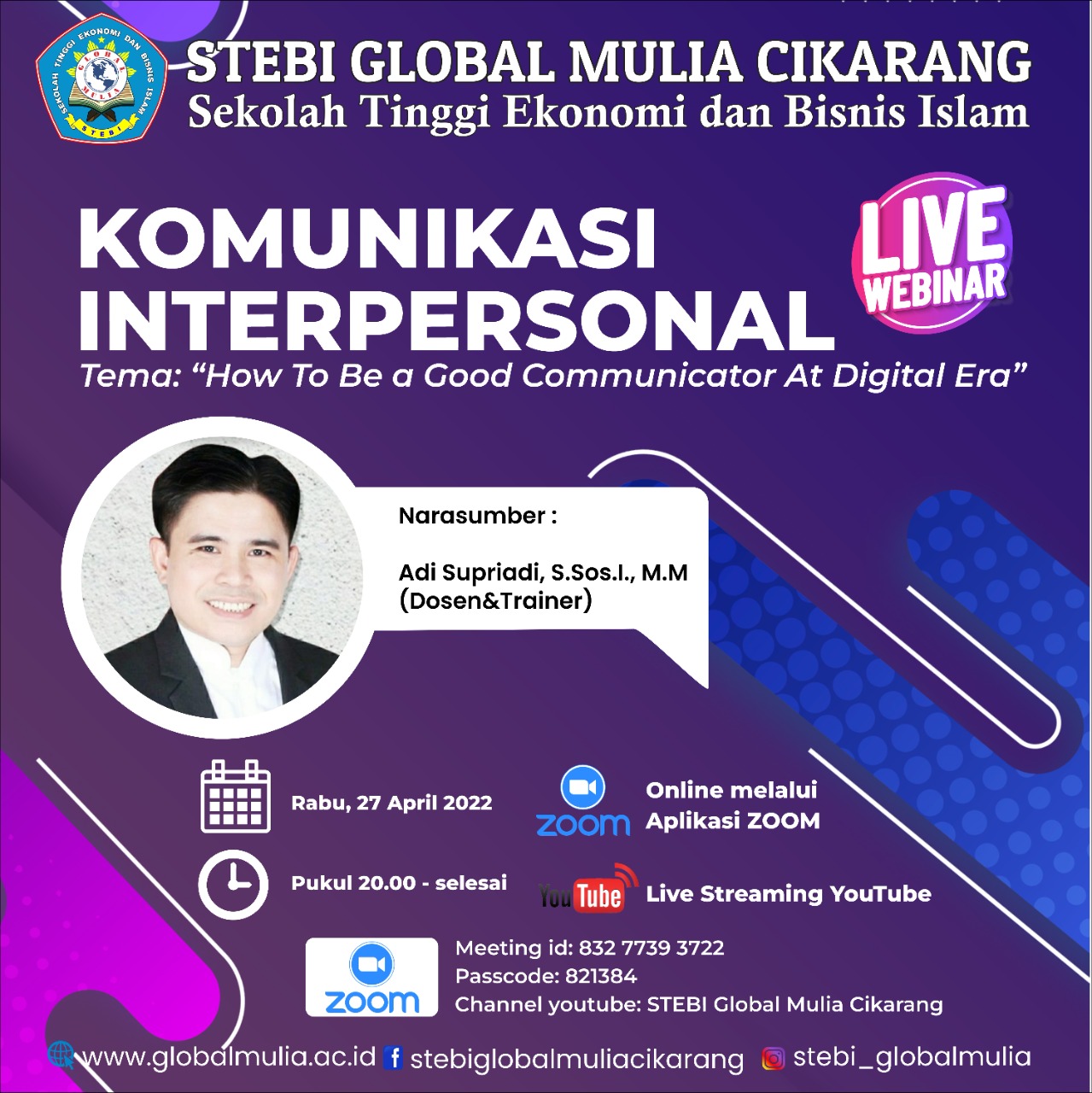 Webinar Komunikasi Interpersonal STEBI Global Mulia, Adi Supriadi : Milenial Wajib Paham Komunikasi Humanis & Beretika!