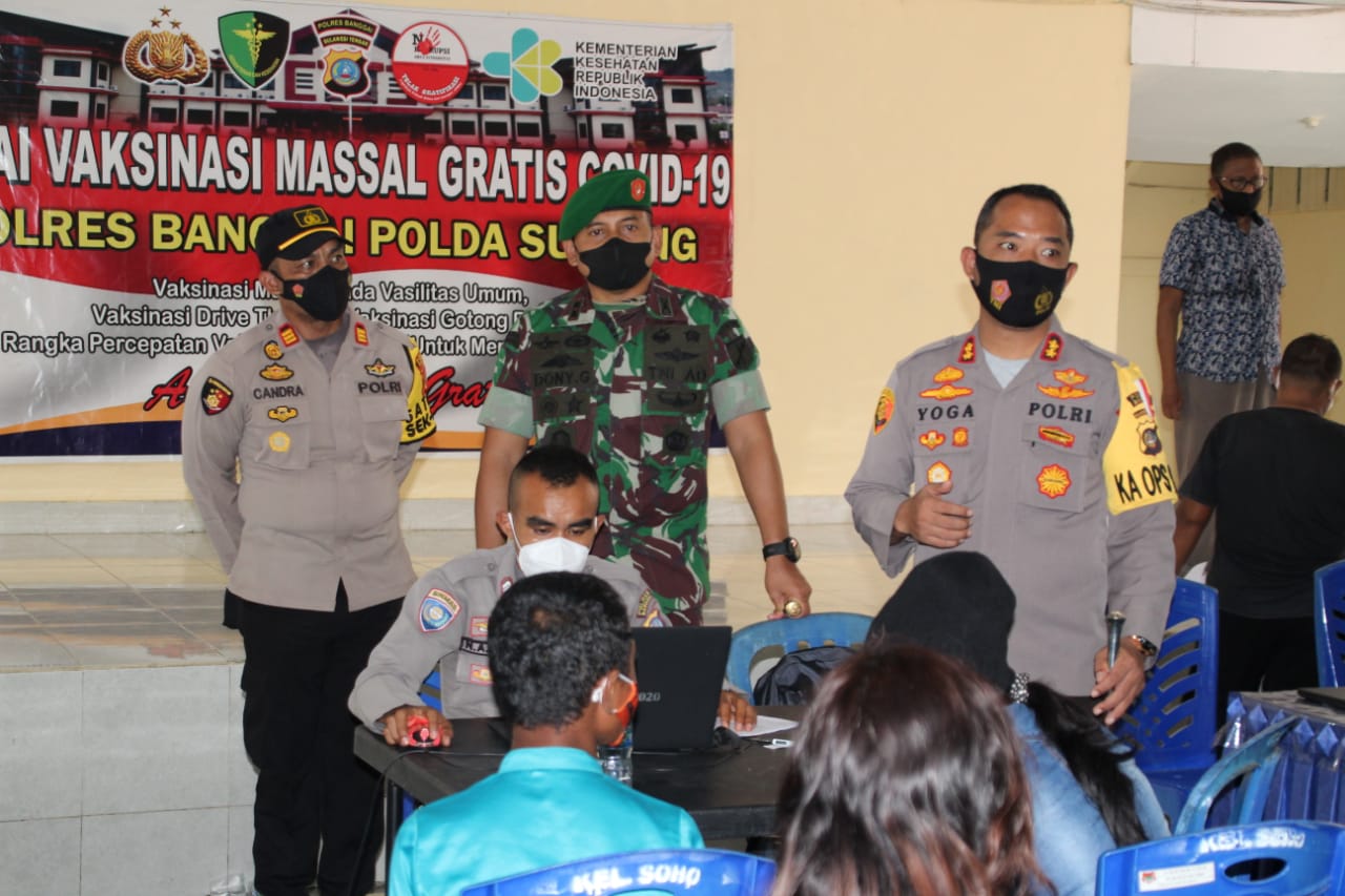 “Pentingnya bersinergi dalam melaksanakan serbuan vaksinasi, guna memutus mata rantai penyebaran Covid-19 di Kabupaten Banggai,” ungkap AKBP Yoga.