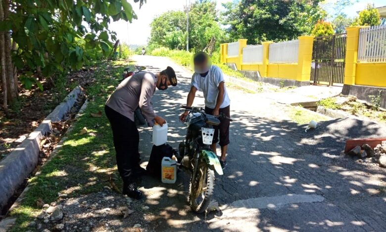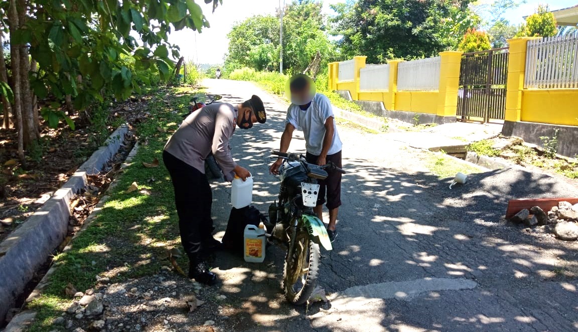 Luwuk.today, Seorang pengendara sepeda motor yang mengangkut puluhan liter miras tradisional jenis cap tikus kembali terjaring KRYD berupa razia Polsek Pagimana, Jumat (24/9/2021).