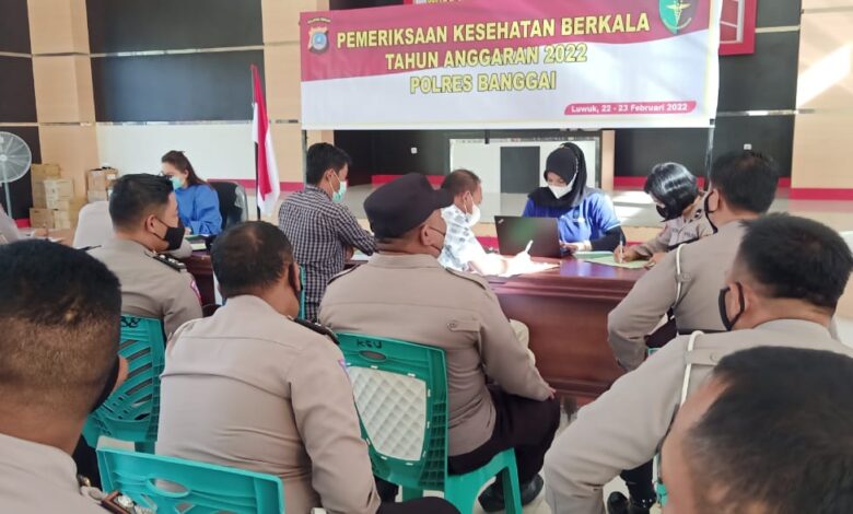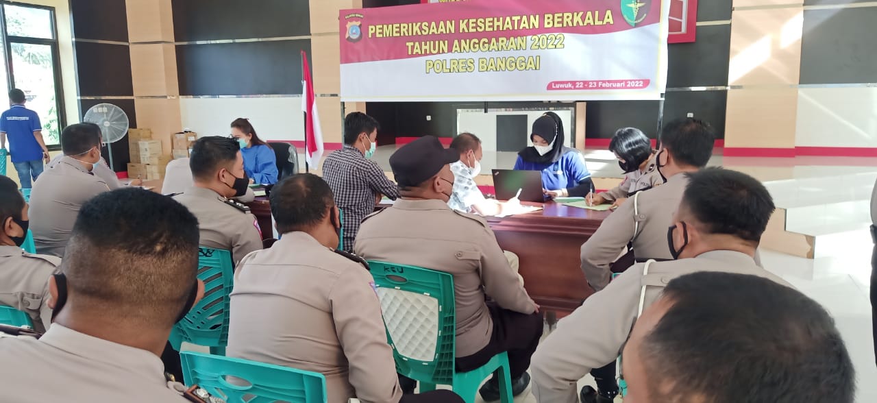 Luwuk.today, Seluruh personel Polres Banggai hingga Polsek jajaran melaksanakan pemeriksaan kesehatan berkala di Aula Maleo Mapolres Banggai, Selasa (22/2/2022).