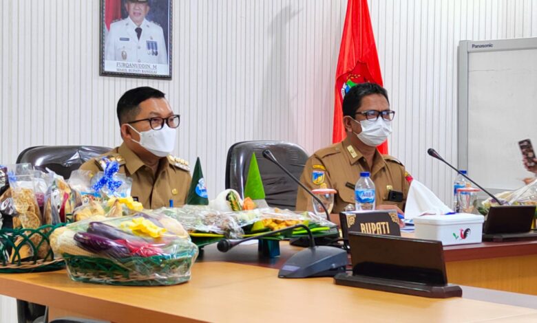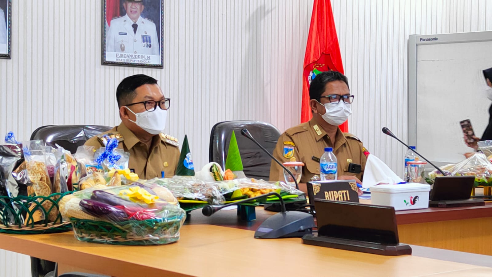 Luwuk.today, Bupati Banggai H. Amirudin di dampingi Kadis Ketahanan Pangan Rudi Purwana K. Bullah, S.Sos menghadiri Kegiatan Diversifikasi Pangan Lokal dan Gelar Buah Nusantara Tahun 2021 secara Virtual bertempat, di ruang Rapat Khusus kantor Bupati Banggai, senin (6/9/2021).