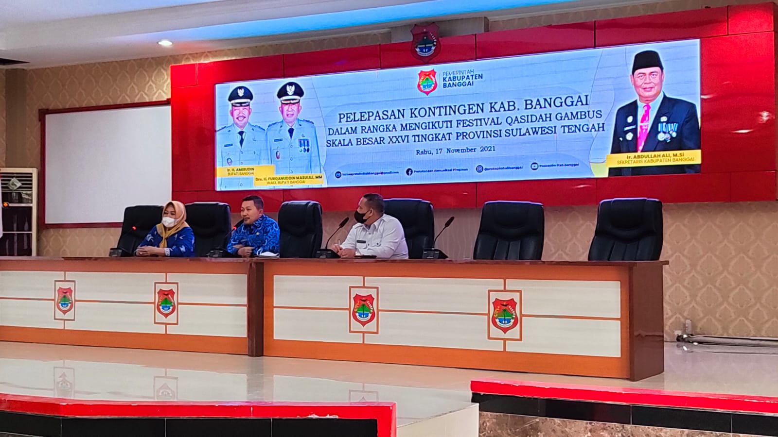 Luwuk.today, Dalam Rangka Mengikuti Festival Qasidah Qambus Skala Besar XXVI Tingkat Provinsi Sulawesi Tengah, Bupati Banggai H. Amirudin secara resmi melakukan Pelepasan Kontingen Seni dan Qasidah Indonesia (Lasqi) Kabupaten Banggai, bertempat di Ruang Rapat Umum Setda Banggai, Rabu (17/11/2021).