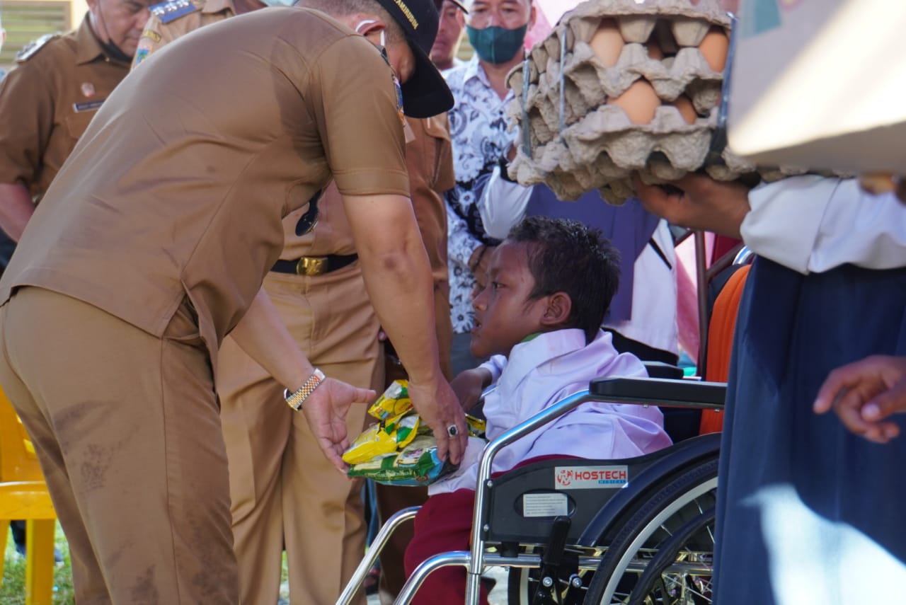Kegiatan tersebut dirangkaikan dengan penyerahan kursi roda bagi anak-anak penyandang disabilitas di Kecamatan Nuhon.