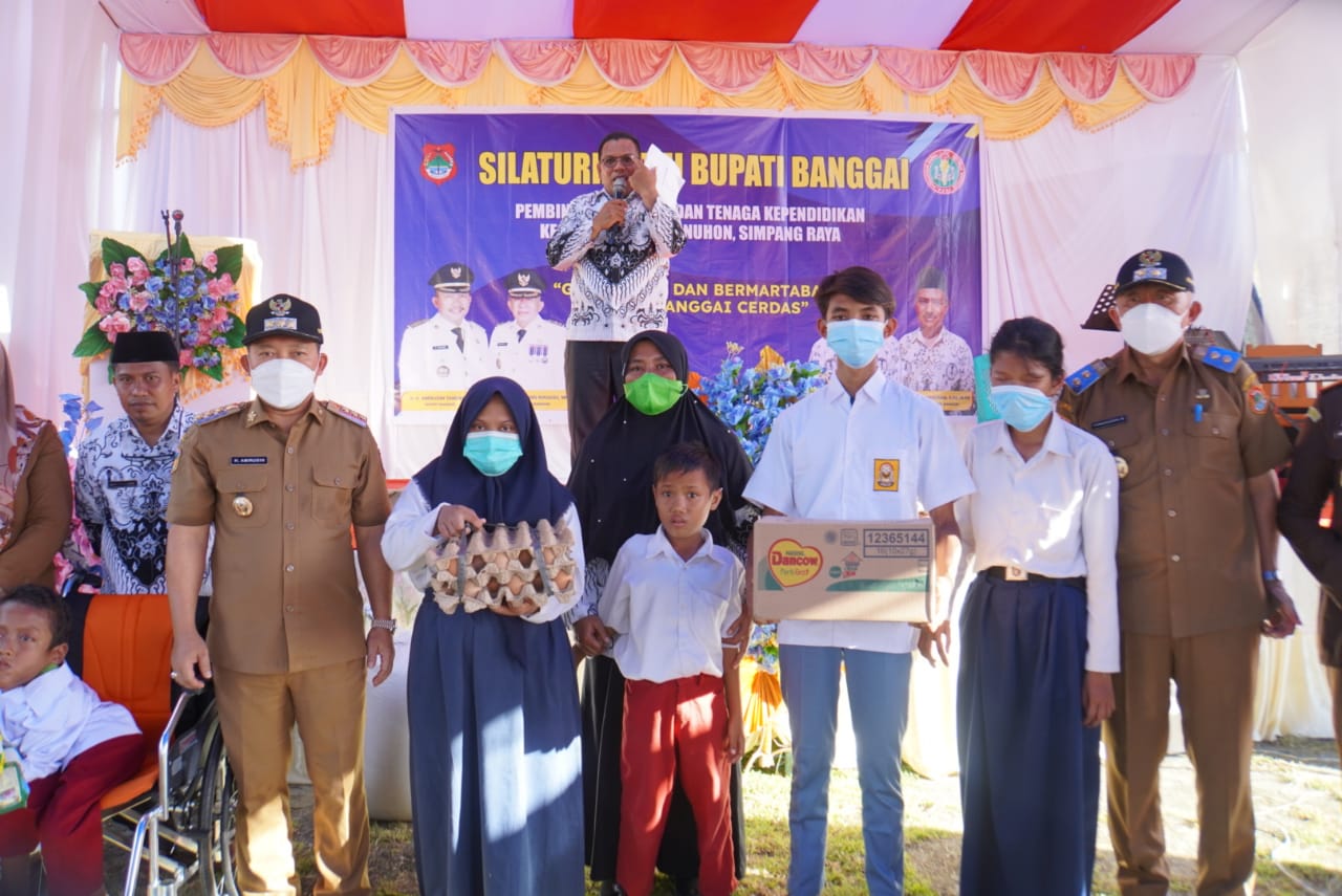 Luwuk.today, Bupati Banggai Ir. H. Amirudin bersama Wakil Bupati H. Furqanuddin menghadiri Kegiatan Silaturahim Bersama Pembina, Pendidik, Dan Tenaga Kependidikan (PGRI) di tiga kecamatan diantaranya Kecamatan Bunta, Nuhon dan Simpang Raya, dengan Tema “Guru Sehat dan Bermartabat, menuju Banggai Cerdas”, bertempat di SDN 1 Tomeang Kec. Nuhon, Selasa (18/01/2022).