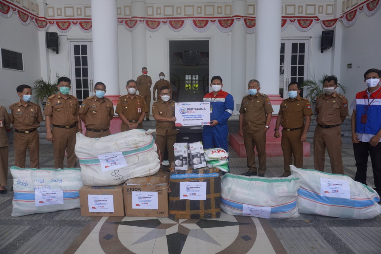 Luwuk.today, Bupati Ir. H. Amirudin bersama Wakil Bupati Banggai Drs. H. Furqanuddin M, Menerima secara langsung bantuan Alat Kesehatan (Alkes) dari PT. Pertamina EP Donggi Matindok Field sebagai wujud Peduli Covid-19 “Pertamina Peduli”.