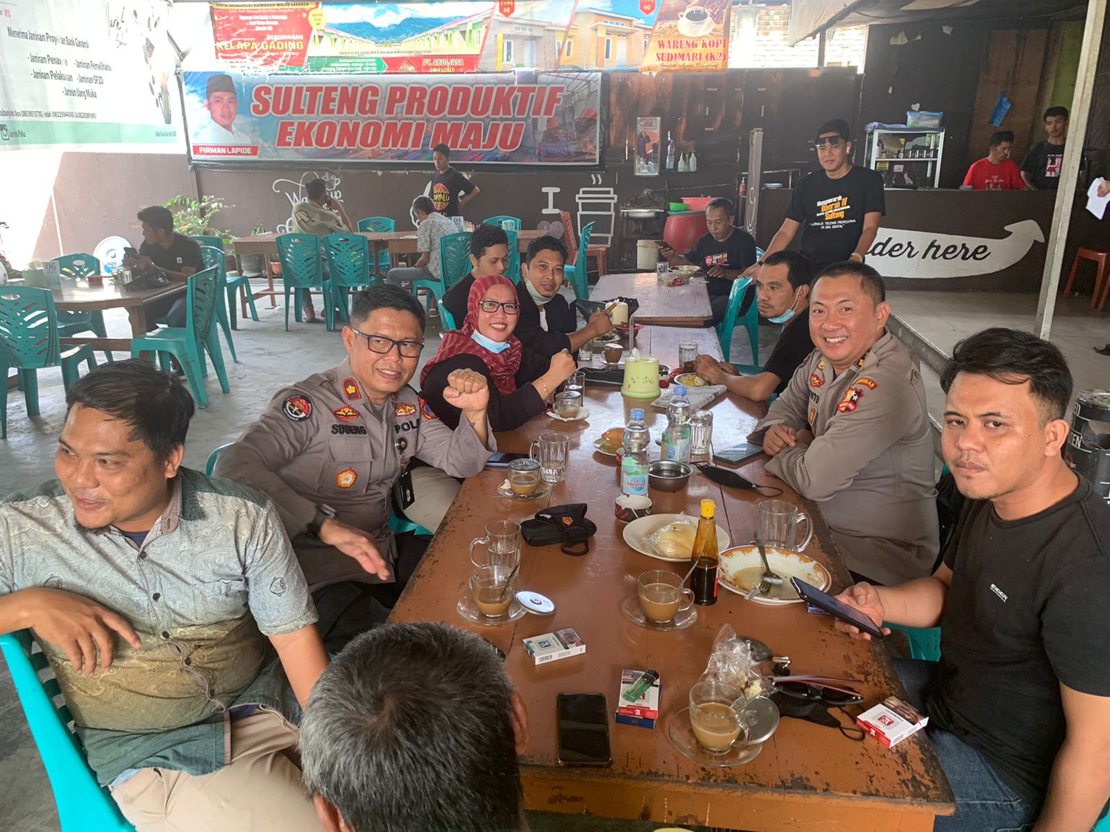 Coffe Morning diselenggarakan di salah satu Warung Kopi (Warkop) Jalan Masjid Raya Kota Palu, sebagai wujud kemitraan Satgas Humas dengan para awak media, khususnya jurnalis televisi, Selasa (7/12/2021).