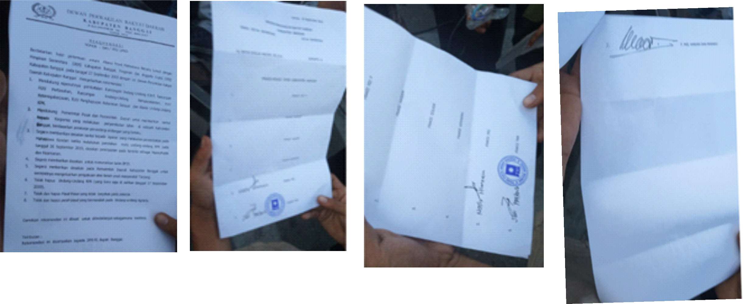 Akhirnya pada pukul 18.09 WITA, Anggota Fraksi DPRD Banggai menyepakati tuntutan front mahasiswa banggai bersatu melalui Surat Rekomendasi No : 890/305/DPRD.