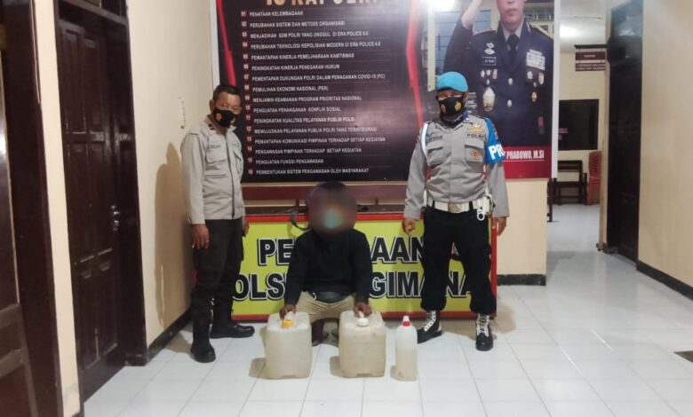 “Barang bukti miras cap tikus yang berhasil diamankan sebanyak 45 liter yang disimpan dalam dua jerigen ukuran 20 liter dan satu jerigen ukuran lima liter,” ungkap AKP Syulri Larau.