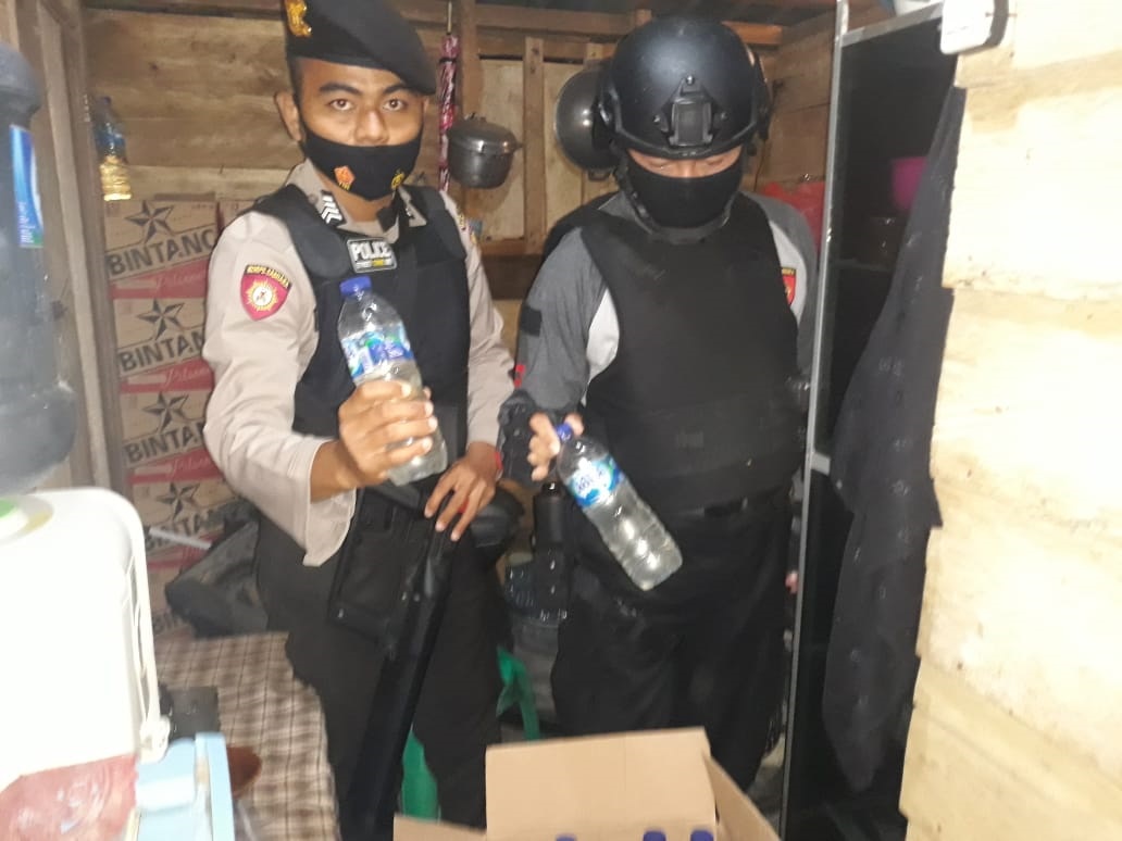 Adapun barang bukti yang ditemukan adalah, 20 botol miras tradisional jenis cap tikus ukuran 600 ml, 14 botol Bir Bintang dan 17 botol Bir Guinness.