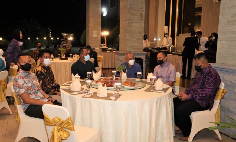 Luwuk.today, Kapolres Banggai AKBP Yoga Priyahutama SH, SIK, MH, menghadiri silaturahmi dan ramah tamah Danrem 132/Tadulako Brigjen TNI Toto Nurwanto SIP MSi di Lobby Hotel Santika, Kabupaten Banggai, Rabu (2/2/2022).