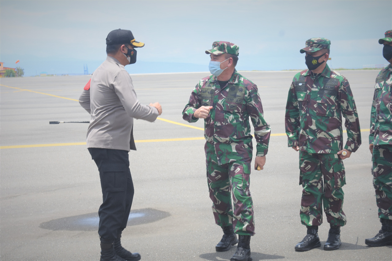 Luwuk.today, Kapolres Banggai AKBP Satria Adrie Vibrianto SIK, MH, menejmput kedatangan Pangdam XIII/Merdeka Mayjen TNI Wanti Waranei F. Mamahit M.Si beserta rombongan, Jumat (17/9/2021).