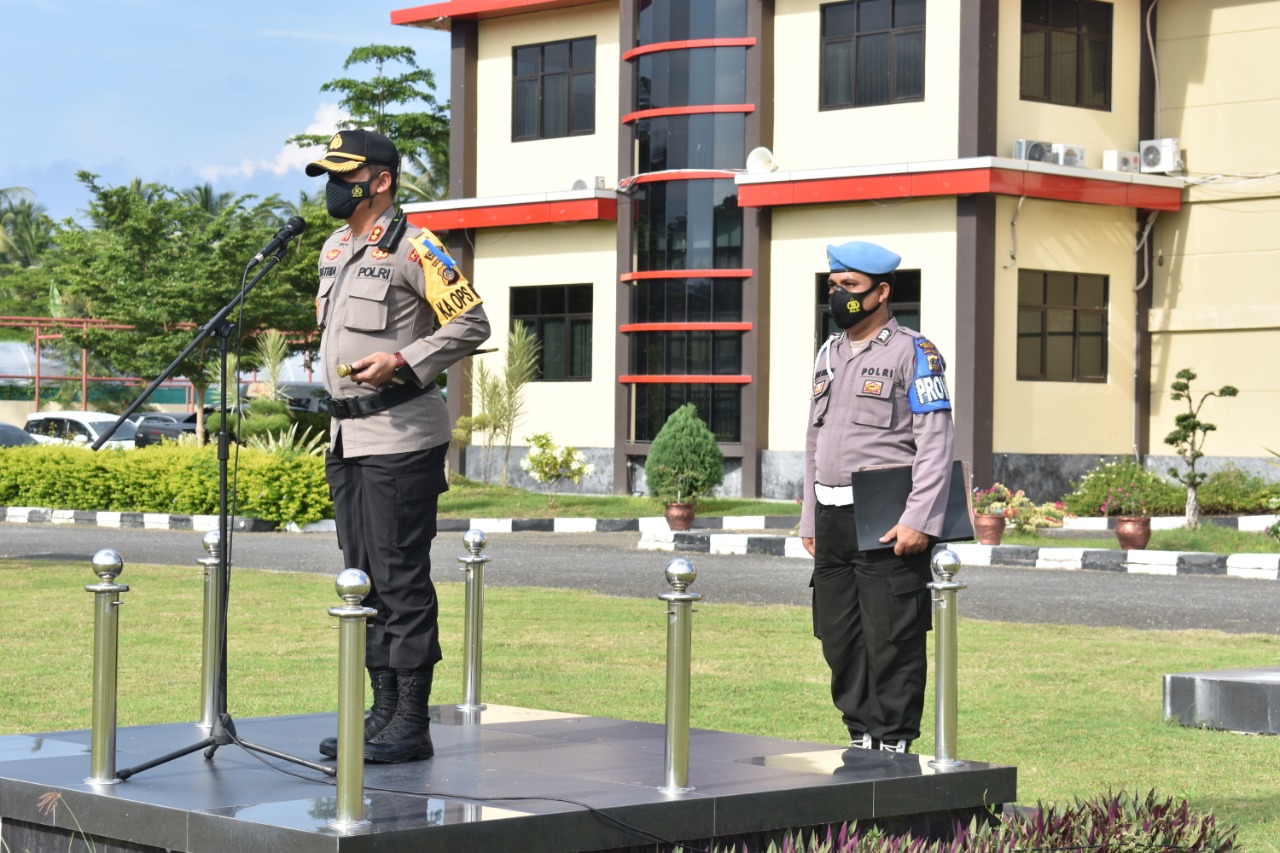 Luwuk.today, Kapolres Banggai AKBP Satria Adrie Vibrianto SIK, MH, memimpin apel kesiapan pengamanan dalam rangka memperingati Hari Buruh 1 Mei 2021, di lapangan Mapolres Banggai, Sabtu (1/5/2021).