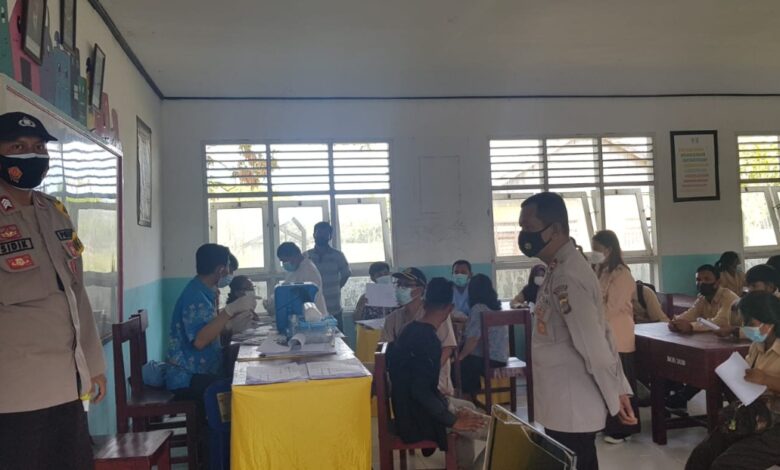 Kapolsek Lamala dan Anggota Pantau Vaksinasi Covid-19 di SMA Negeri 1 Masama