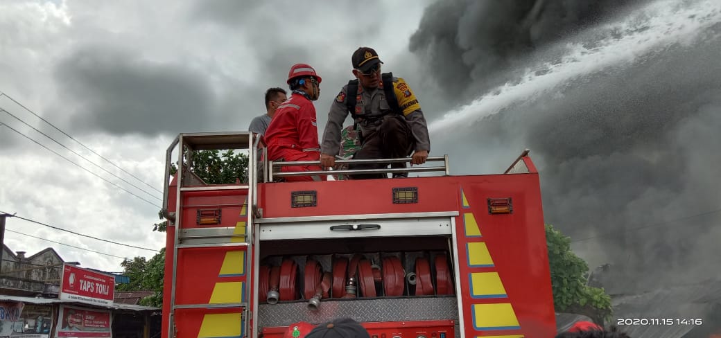 “Namum karena peralatan tidak memadai membuat warga kesulitan memadamkan kobaran api yang mulai merembet ke ke ruko lainnya,” ungkap Iptu Candra.