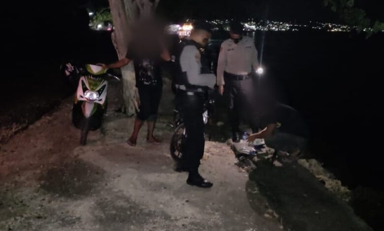 Kali ini polisi kembali menemukan dua pria tengah mengonsumsi miras di jalur pantai, Kelurahan Maahas, Kecamatan Luwuk Selatan, Rabu (2/3/2022) malam.